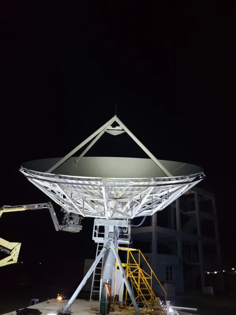 Design, supply and installation and Testing of a 9.0m C-Band motorized tracking earth station antenna with a redundant 2.25Kwatt indoor HPA system, RF distribution as well as rack integration of CFE modem subsystem. As part of the project, we also installed and commissioned two NGSO intellian terminals tracking the OneWeb constellation.